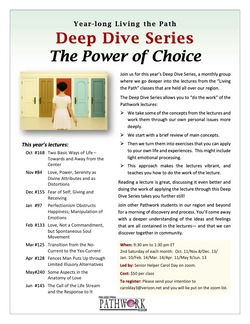 Ready to go deeper into a Living the Path lecture on this year’s theme? Join other Pathwork students in our region and beyond for a morning of discovery and process. You’ll come away with a deeper understanding of the ideas and feelings that are all contained in the lectures— and that we can discover together in community.