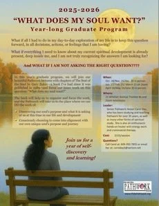In this program for graduates of the Transformation Program, we will join Pathwork lectures with chapters of The Seat of the Soul by Gary Zukav to focus our inner work on this question: “What does my soul want?” This class will help you discover your soul’s purpose and align your life with your soul’s journey.